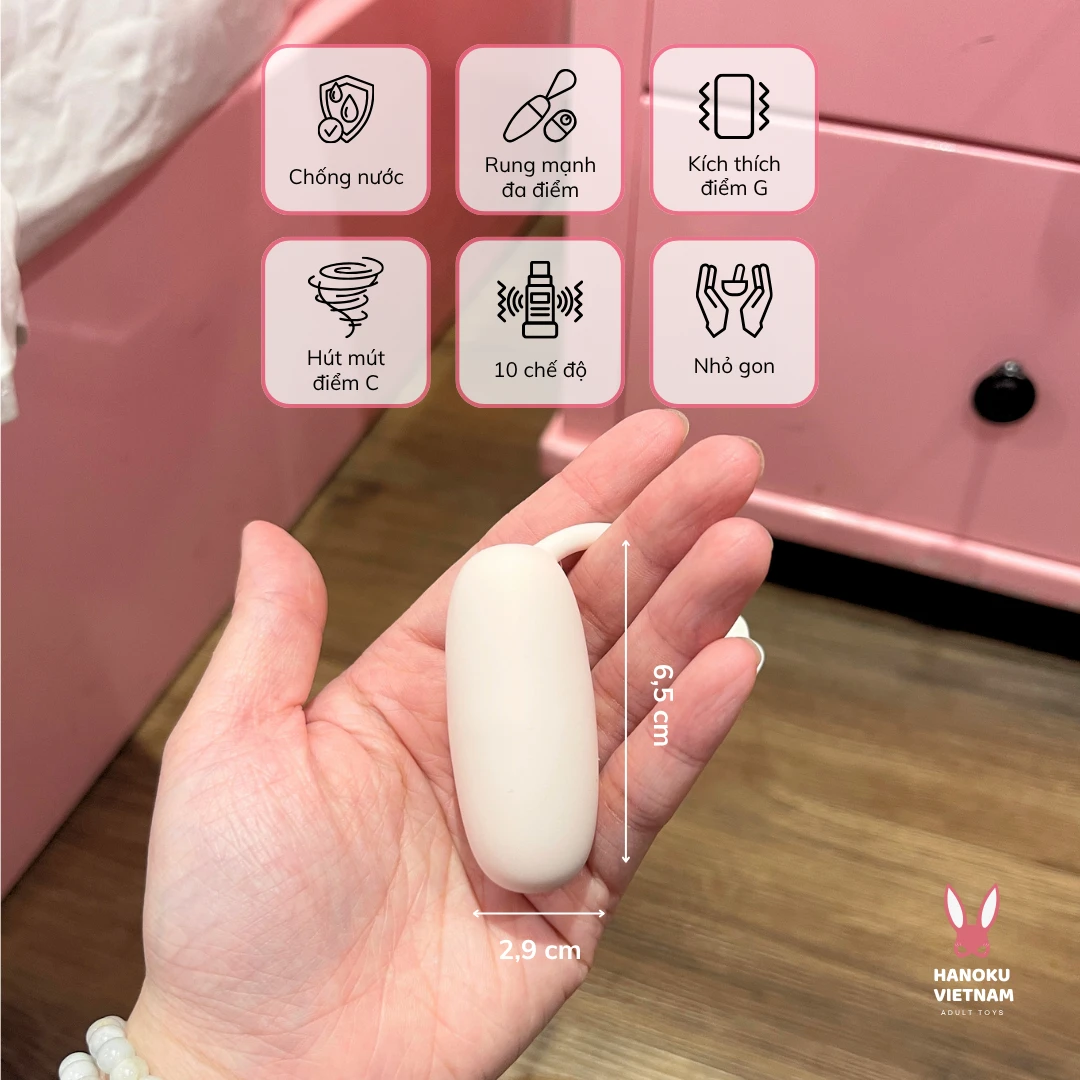 - Trứng rung: Nhấn và giữ nút nguồn 3s để bật/ tắt nguồn. Sau khi bật nguồn, nhấn nhẹ để chuyển chế độ rung. Nhấn nút 3 lần để bật/ tắt chế độ sưởi